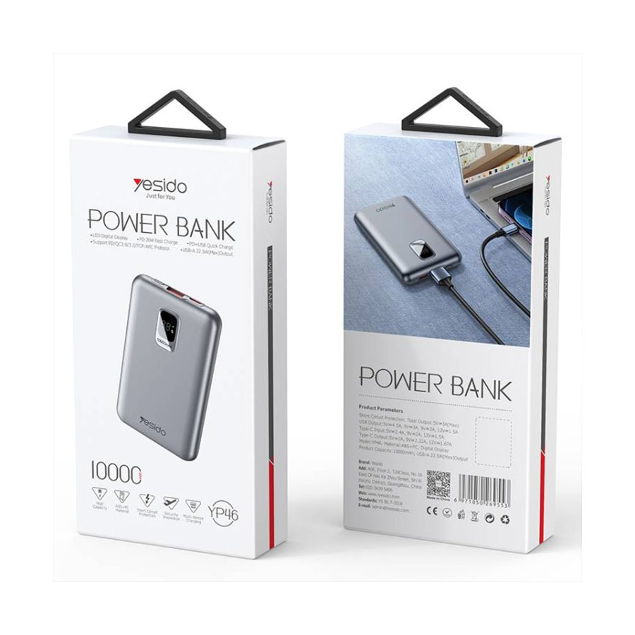 پاوربانک YESIDO YP46 با ظرفیت 10000 میلیآمپر، همراه همیشگی شما در سفرها و روزهای پرکار! با طراحی زیبا و جمعوجور، توانایی شارژ سریع و ایمنی بالا را ارائه میدهد. هماکنون خرید کنید و نگران خالی شدن باتری دستگاههای خود نباشید. انتخابی هوشمندانه برای زندگی مدرن و پرانرژی!